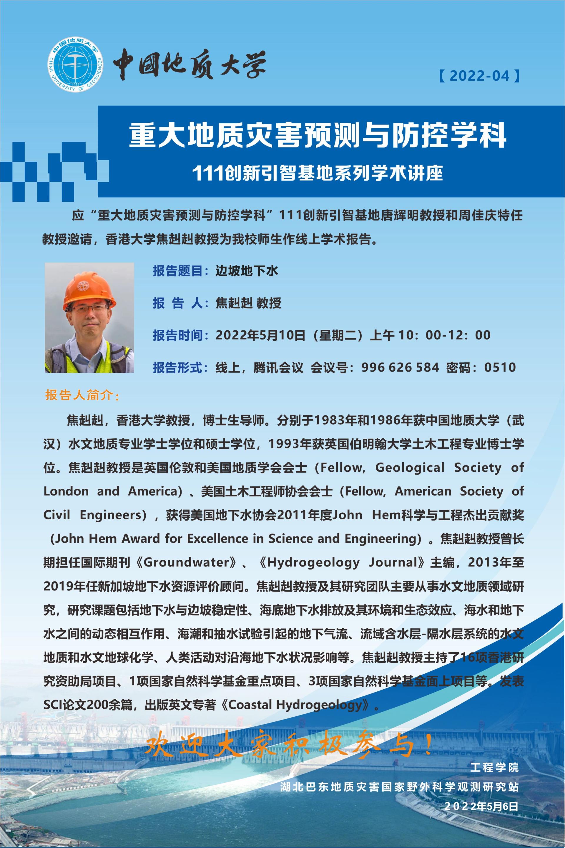 重大地质灾害预测与防控学科---111创新引智基地系列学术讲座2022-04