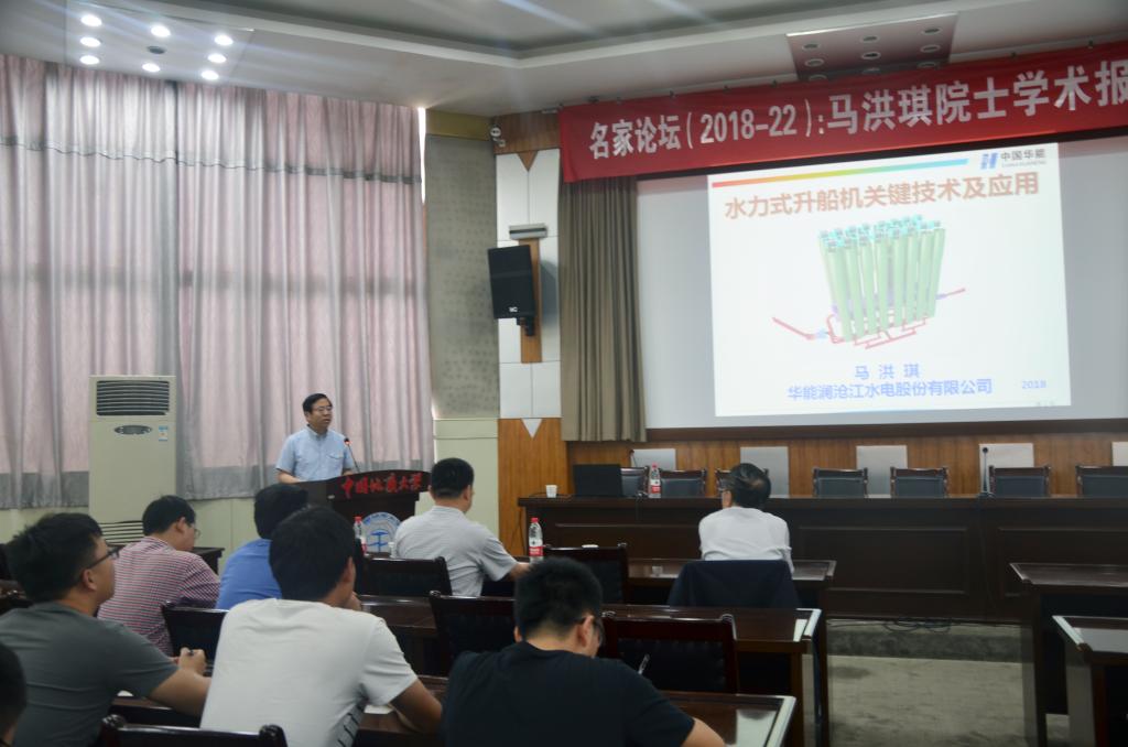 马洪琪院士以《水力式升船机关键技术及应用》为题,向与会师生展示了我国具有自主知识产权的新型升船机——水力式升船机,介绍了水力式升船机的设计理论和方法,讲解了水力式升船机中的水力驱动同步技术、流量均衡和液面稳定技术、多重耦合作用下船厢抗倾斜机理等重大技术难题,并与师生就有关问题进行了热烈讨论。