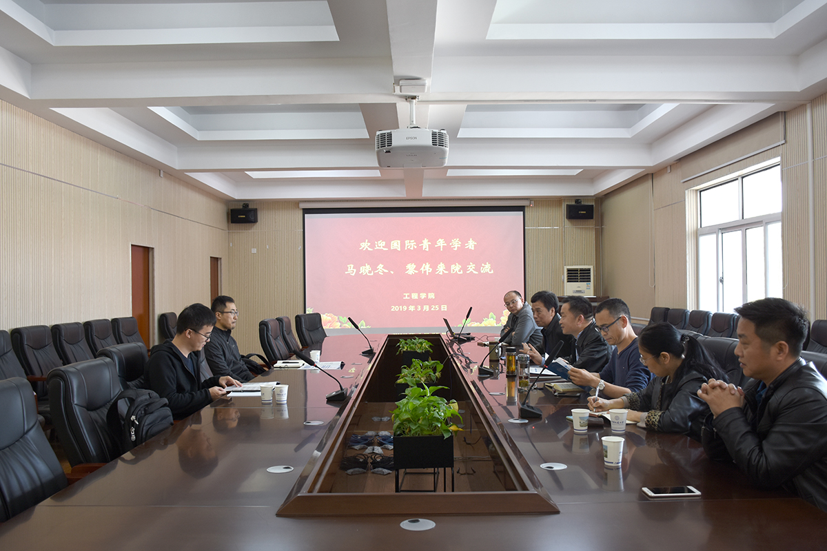 2019年3月25日下午14点30分,第三届“国际青年学者地大论坛”工程学院分论坛在工程楼315会议室拉开帷幕。院党委书记陈飞、院长焦玉勇、副院长罗学东、副院长窦斌、副院长倪晓阳、院党委副书记江广长、院长助理李长冬及两位国际青年学者马晓冬、黎伟参加座谈会。