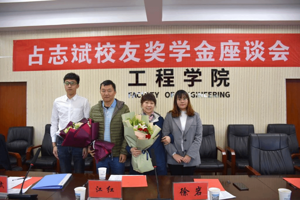 (通讯员:卓越 王焱)为凝聚校友力量,促进院校发展,落实感恩励志教育,11月18日下午,工程学院在工程楼315会议室召开“占志斌校友奖学金座谈会”。占志斌校友及夫人江红女士、校友工作与教育基金管理处处长徐岩、学生工作处副处长苏洪涛、工程学院姚爱国教授、工程学院党委书记陈飞、党委副书记江广长、勘察与基础工程系党支部书记段隆臣、校友工作与教育基金管理处丁苗苗、24名“占志斌校友奖学金”获奖学生代表参加座谈会。座谈会由工程学院副院长窦斌主持。