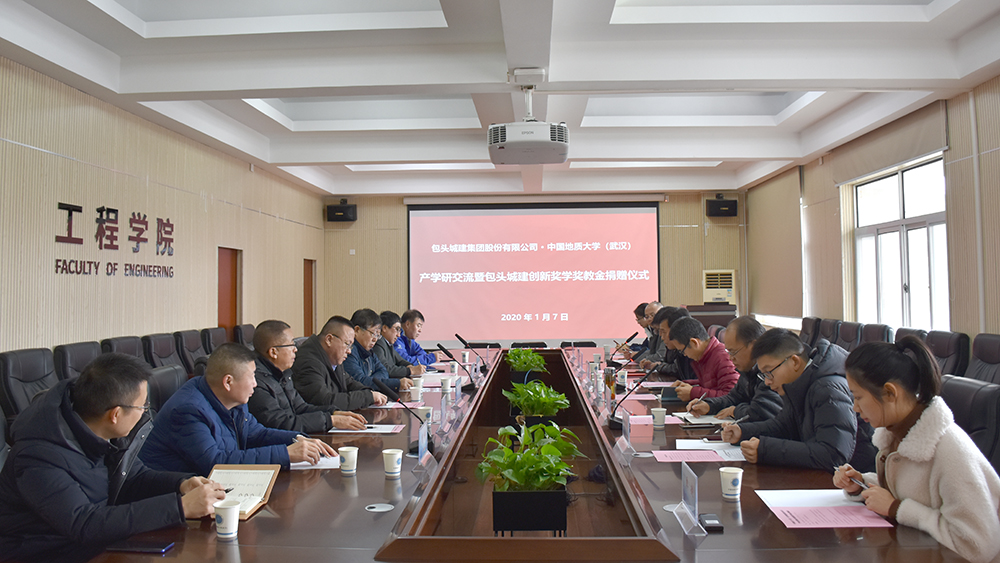 (通讯员卓越 摄影王灿)1月7日,工程学院在工程楼315会议室召开“中国地质大学(武汉)-包头城建集团股份有限公司产学研交流暨包头城建创新奖学奖教金捐赠仪式”,包头城建集团股份有限公司向学校进行第四次捐赠。包头城建集团股份有限公司董事长、总经理刘江一行5人、校友工作与教育基金管理处、工程学院相关负责人参加捐赠仪式。