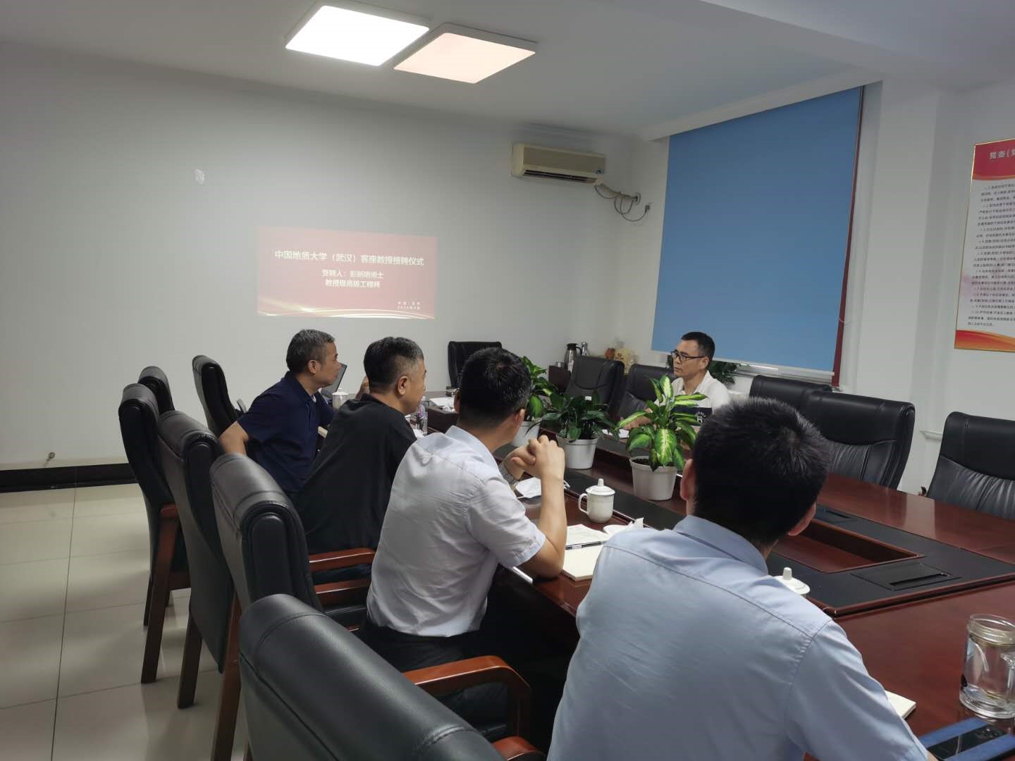 8月12日下午,中国地质大学(武汉)聘请彭新明博士为客座教授的仪式在北京市地质勘察技术院217会议室举行。北京市地质勘察技术院行政负责人王立发、院副总工程师兼资源勘查中心主任彭新明及相关人员出席仪式。仪式由工程学院副院长窦斌教授主持。