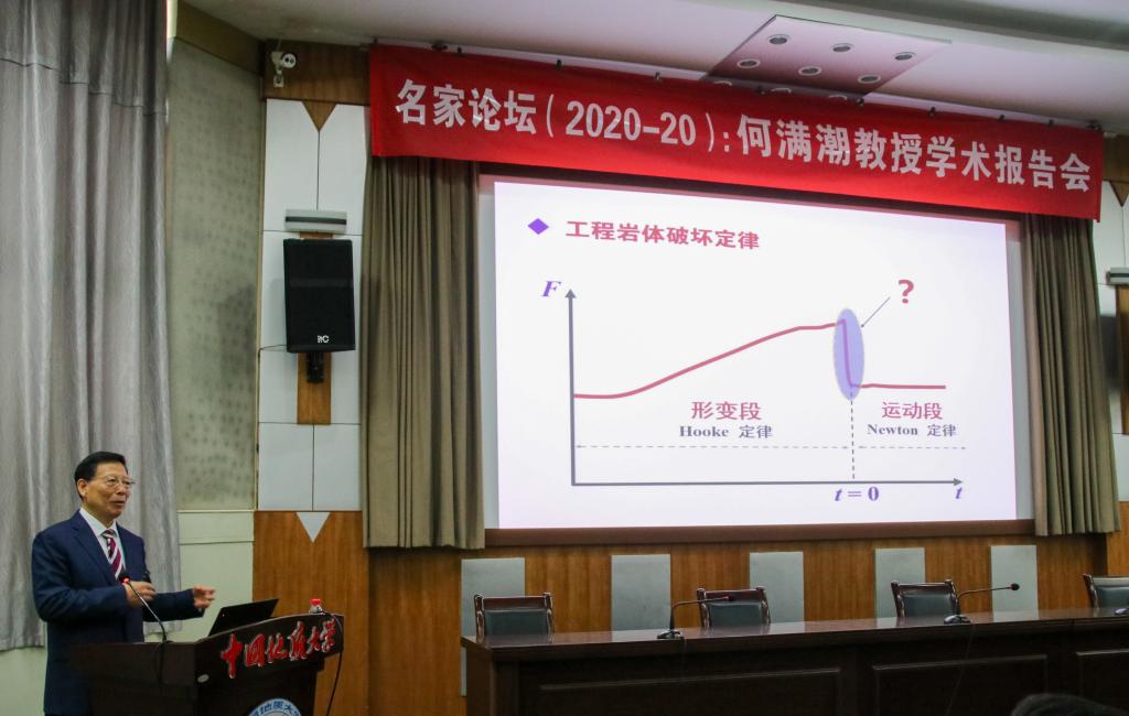 (通讯员:李浩林 黄静)2020年11月19日下午2:30,中国科学院院士何满潮教授作客名家论坛,在八角楼学术报告厅作了题为“滑坡灾害短临预报思考”的学术报告。我校副校长赖旭龙教授,工程学院院长焦玉勇教授,工程学院副院长王亮清教授、罗学东教授、窦斌教授,勘基系党支部书记段隆臣教授以及师生代表近200人参加了此次学术报告会。副校长赖旭龙教授主持了此次学术报告会。