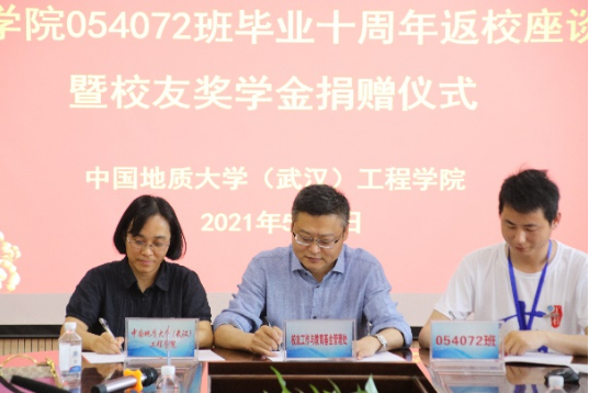 5月2日下午14:30,工程学院054072班毕业十周年返校座谈会暨校友奖学金捐赠仪式在工程楼315会议室举行。校友工作与教育基金管理处处长徐岩,工程学院党委书记李红丽,院长焦玉勇,副院长王亮清、窦斌,勘基系教师及21位校友出席了本次座谈会。校友唐博主持本次座谈会。