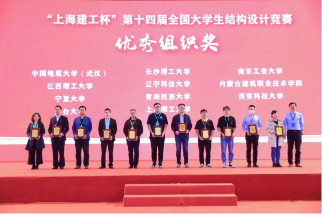 (通讯员:张美霞 王灿)2021年10月13至17日,“上海建工杯”第十四届全国大学生结构设计大赛在上海交通大学举行,历经四天的激烈角逐,大赛在紧张、友好的氛围中圆满闭幕。全国31个省(市、自治区)550所高校、1148支队伍,共选拔出110所高校,112支队伍参加国赛。中国地质大学(武汉)工程学院首次参加国赛,荣获全国二等奖和优秀组织奖。