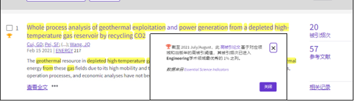 (通讯员:黄静)根据202111月基本科学指标数据库(Essential Science Indicators,简称ESI)最新数据显示,工程学院勘察与基础工程系崔国栋副教授于2021年在国际工程技术顶级期刊Energy上发表的学术论文“Whole process analysis of geothermal exploitation and power generation from a depleted high-temperature gas reservoir by recycling CO2”入选ESI高被引论文(Highly Cited Paper)。该论文第一作者兼通讯作者为崔国栋副教授,中国地质大学(武汉)工程学院为第一署名单位。