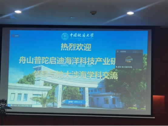 交流会上,工程学院党委书记李红丽首先致辞。她表示,对此次与启迪海洋科技产业研究院的合作交流充满了期待,双方合作将有力推动国内涉海学科专业人才的培养,并加快相关科研成果的产出。海洋学院党委书记成军阐述了地大涉海学科的基本情况,并介绍了参会专家、教授在相关领域的研究方向与研究成果。