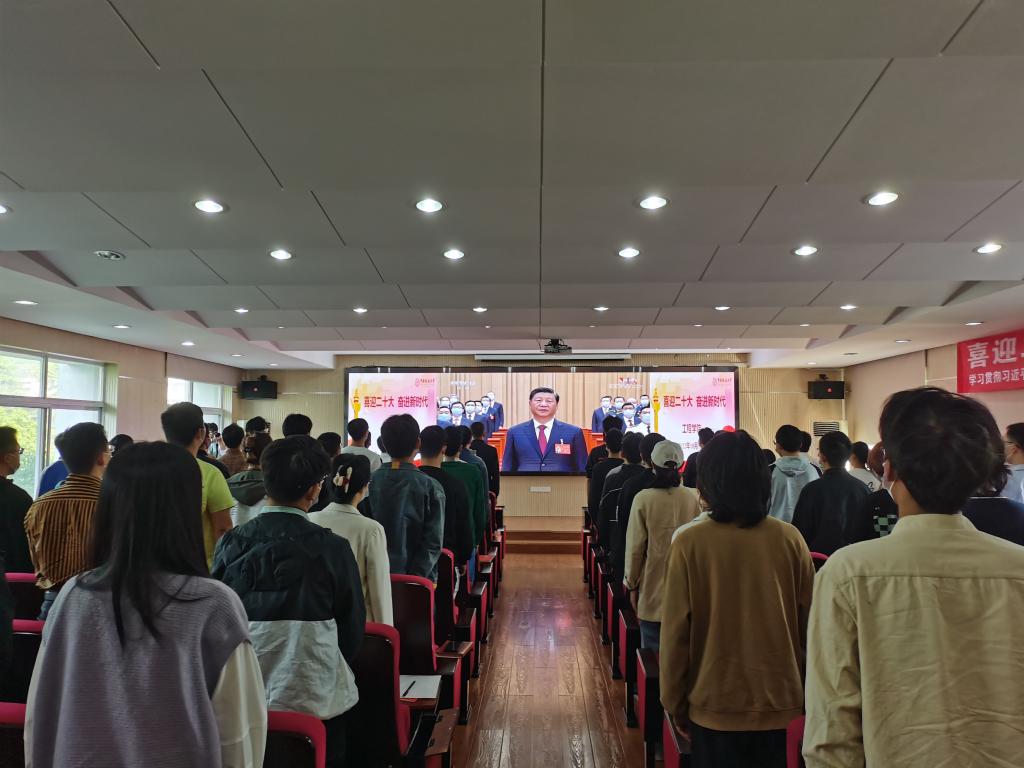 工程学院党委书记李红丽,院长焦玉勇,副院长王亮清、倪晓阳、章广成,院党委副书记高晓东,各教工党支部书记、主任,院直机关全体工作人员及辅导员在工程楼315集中收看,各系(中心)教工党支部在各系会议室集中收看,学生党支部、团支部代表在工程楼418报告厅集中收看,窦斌副院长及学院代表等在东区教学综合楼A0113集中收看,其他师生在各自宿舍、工作室、会议室等通过电脑、手机收听收看。