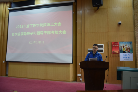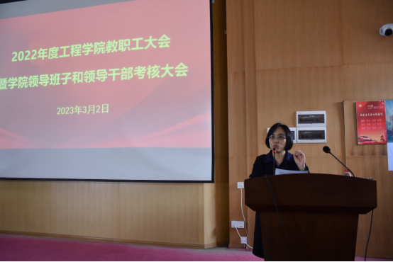2023年3月2日下午,工程学院在教三楼109召开全院教职工大会,总结2022年度学院工作并部署2023年度重点工作。院领导班子、全院教职工及学生代表参加会议,会议由学院党委书记李红丽主持。