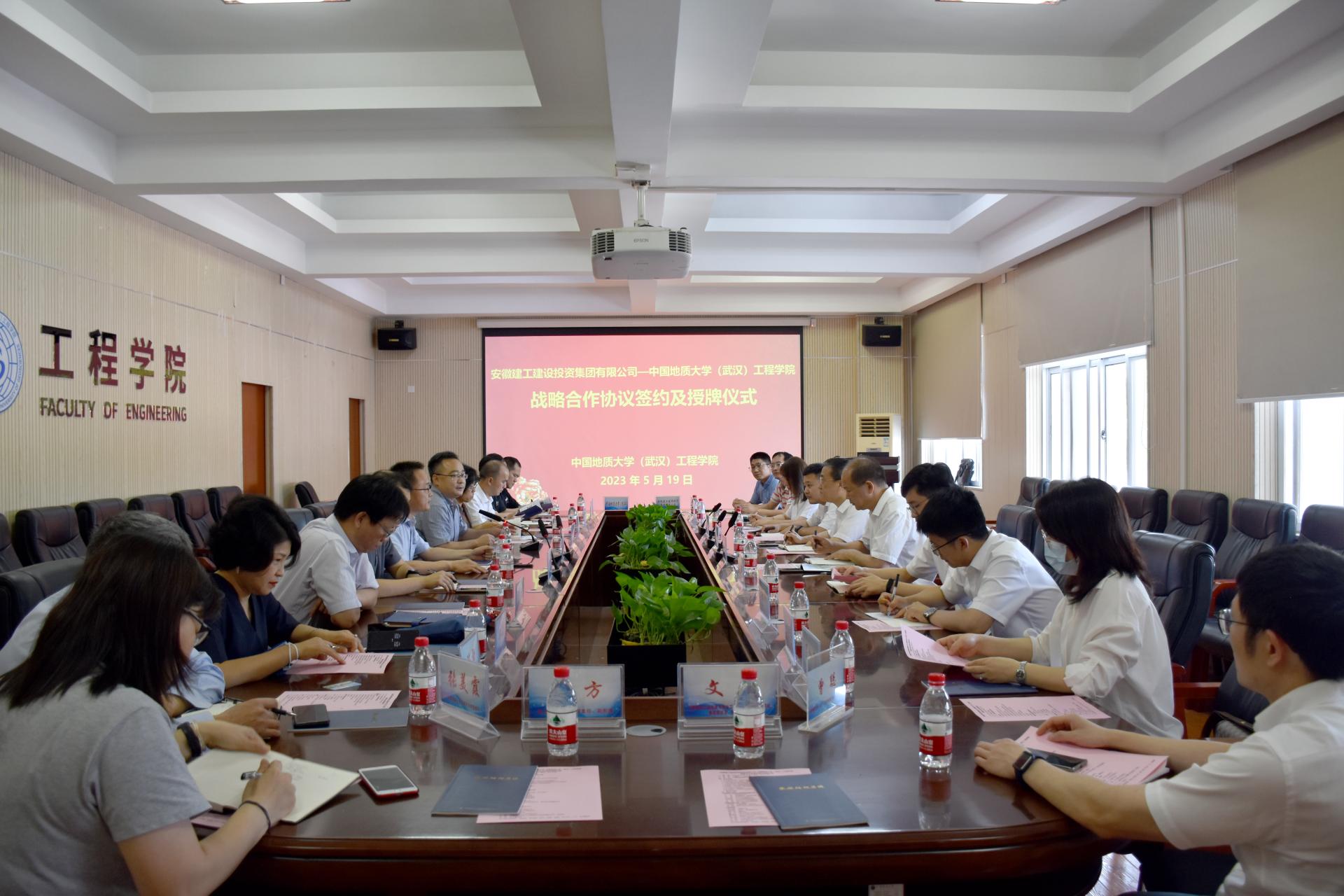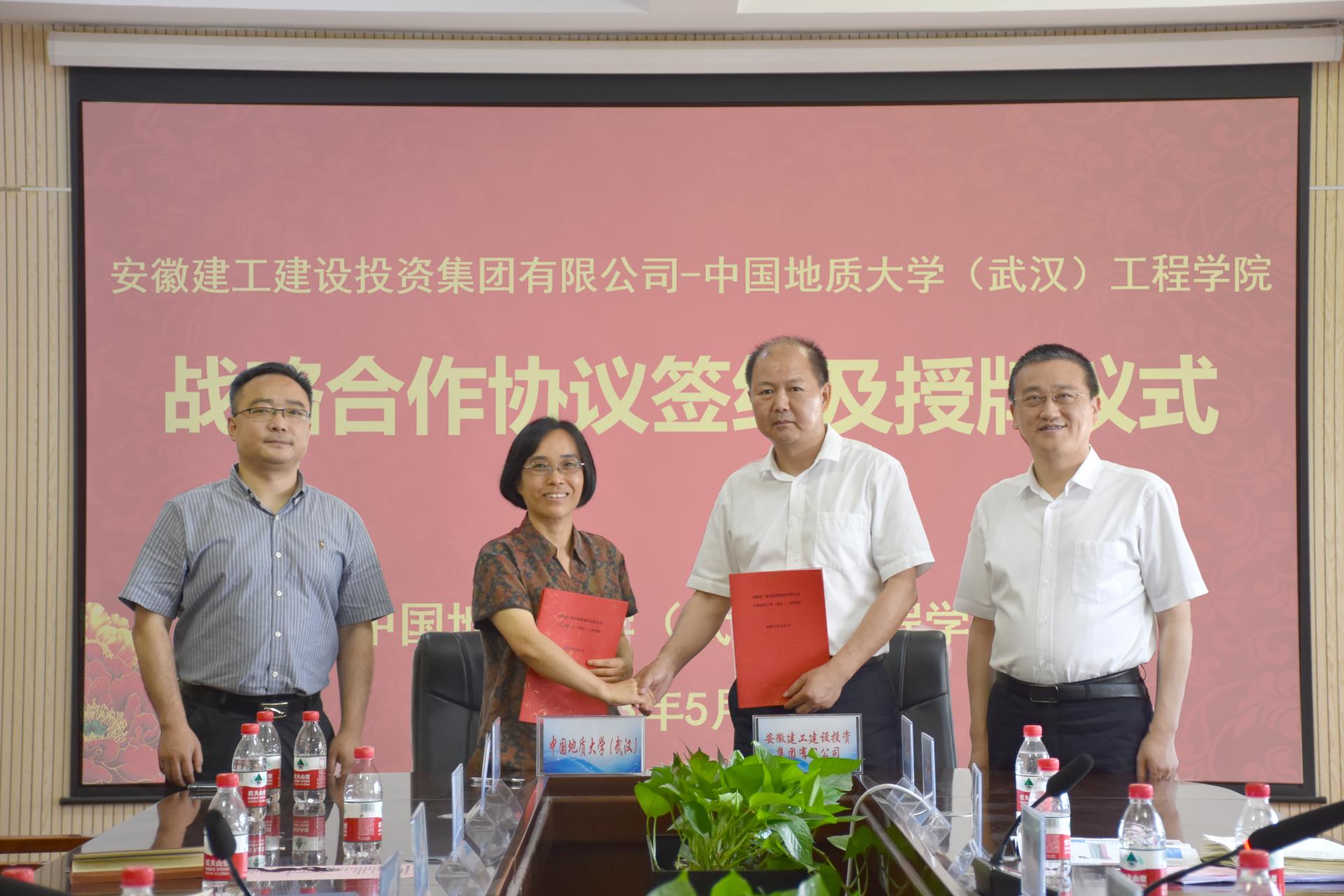 (通讯员 张美霞 王灿 冯焱 )5月19日,我院与安徽建工建设投资集团有限公司(以下简称:建设投资集团)签署战略合作协议。建设投资集团副书记干戈,党委委员、副总经理、总工程师陈莘,我校党委常委、副校长王力哲,校友与社会合作处副处长、深圳研究院副院长王强,我院党委书记李红丽,党委副书记、院长焦玉勇,副院长章广成及双方相关人员参加合作座谈会和签约仪式。李红丽主持会议。