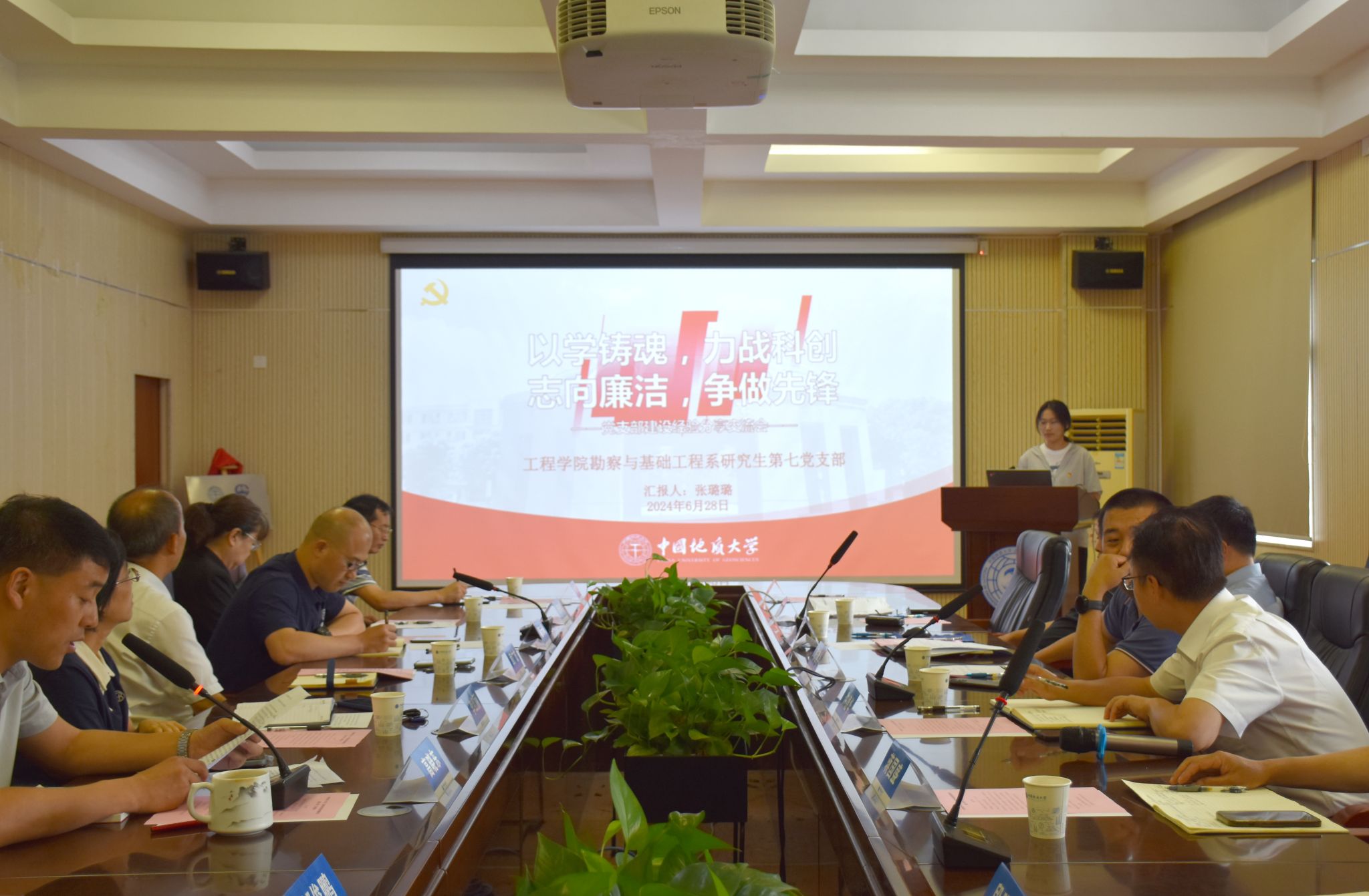 勘察与基础工程系研究生第七党支部书记张璐璐,系统汇报“导学团队+支部建设”的工作思路与积极成效,展示了研究生党支部如何紧密依托工程学院勘察与基础工程系教师党支部的资源优势,不断探索和创新工作模式。党支部以“思想固邦”为引领,以实现“科技固邦”的目标,以“奉献固邦”作为自己的行动准则。这一系列举措不仅增强了党支部的凝聚力和战斗力,也为学院和社会的发展贡献了积极力量。