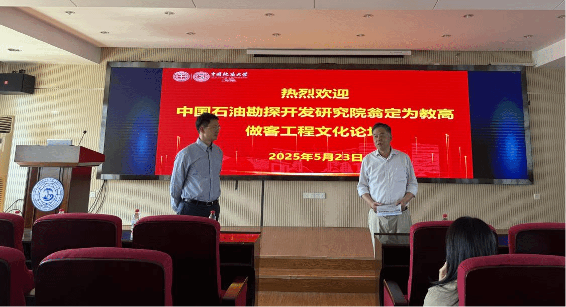 (通讯员 黄金 张浠)5月23日下午,应工程学院和科技部地球深部钻探与深地资源开发国际联合研究中心主任张浠教授的邀请,中国石油勘探开发研究院翁定为教授级高级工程师做客工程文化论坛。讲座在工程楼418报告厅举行,由张浠教授主持,程万副研究员、资源学院孔令运特任教授等多名师生聆听了报告。