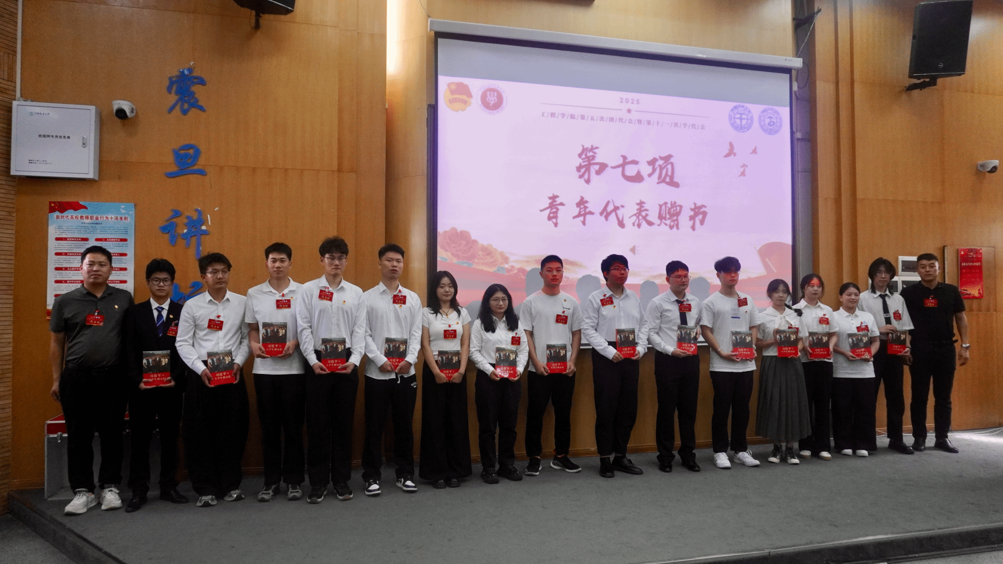工程学院党委副书记高晓东和挂职团委副书记刘浩为今年在“五月的鲜花”2025年五四评优活动获奖的优秀青年和集体、工程学院“十大标兵学生”赠书。