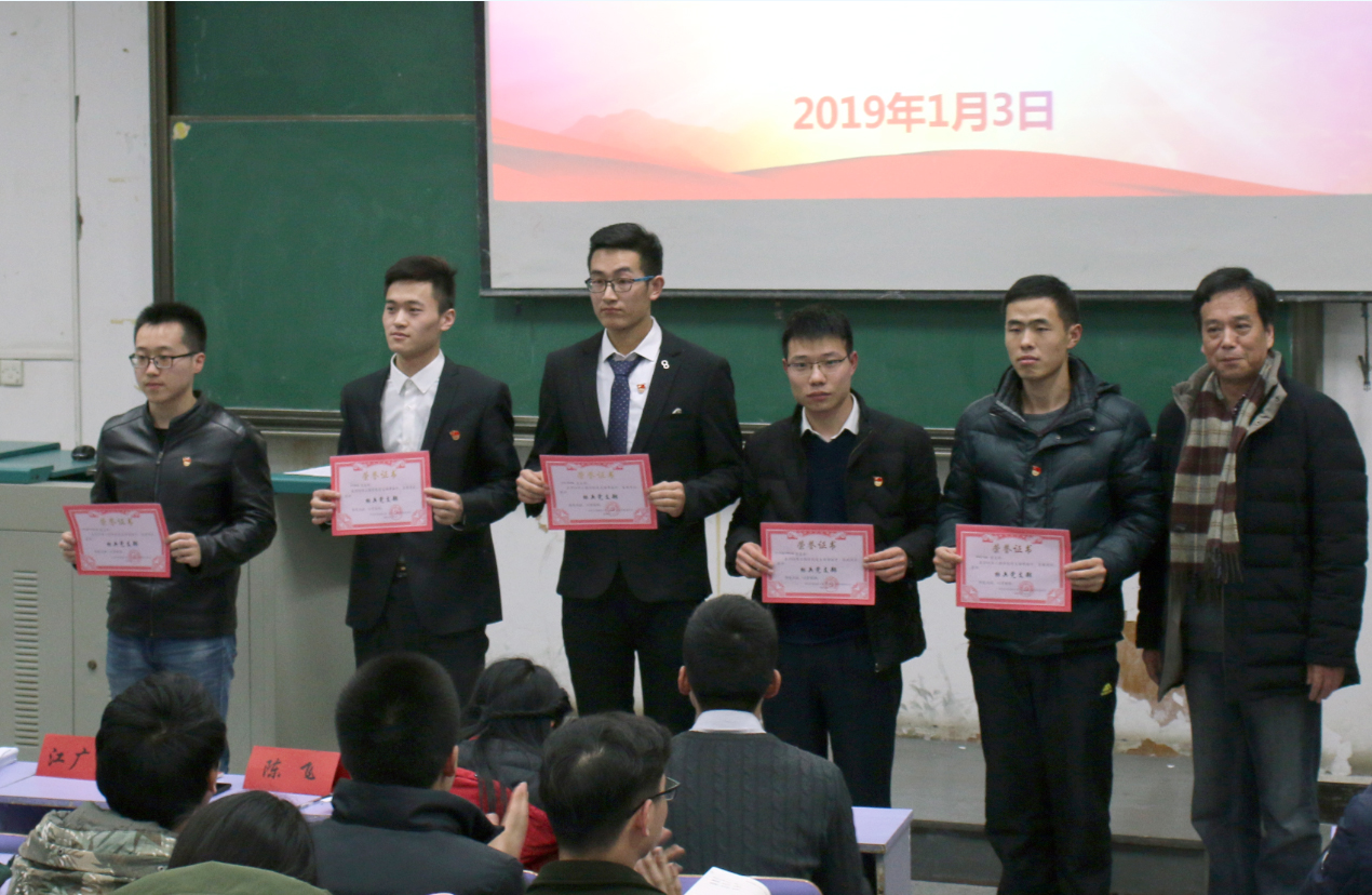 2019年1月3日晚,工程学院2018年度学生党支部书记年终述职答辩暨党员表彰大会在教三楼201和207教室成功举行。
