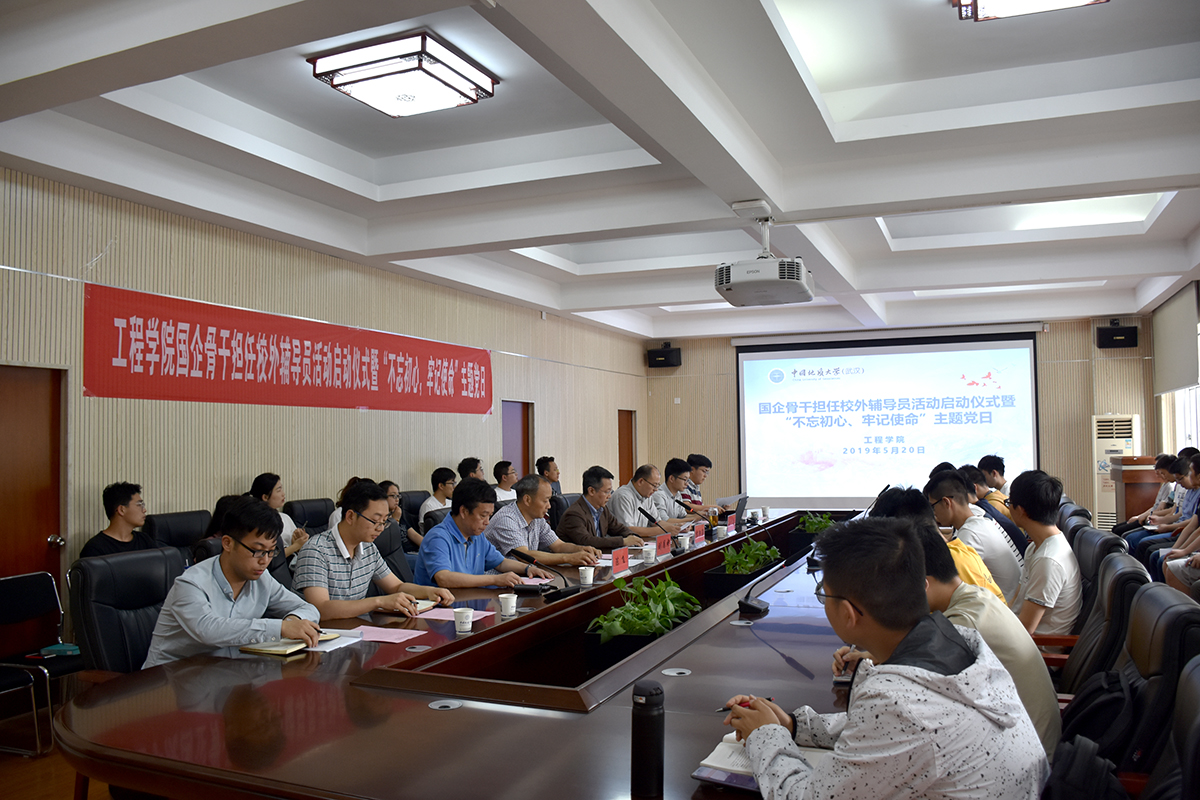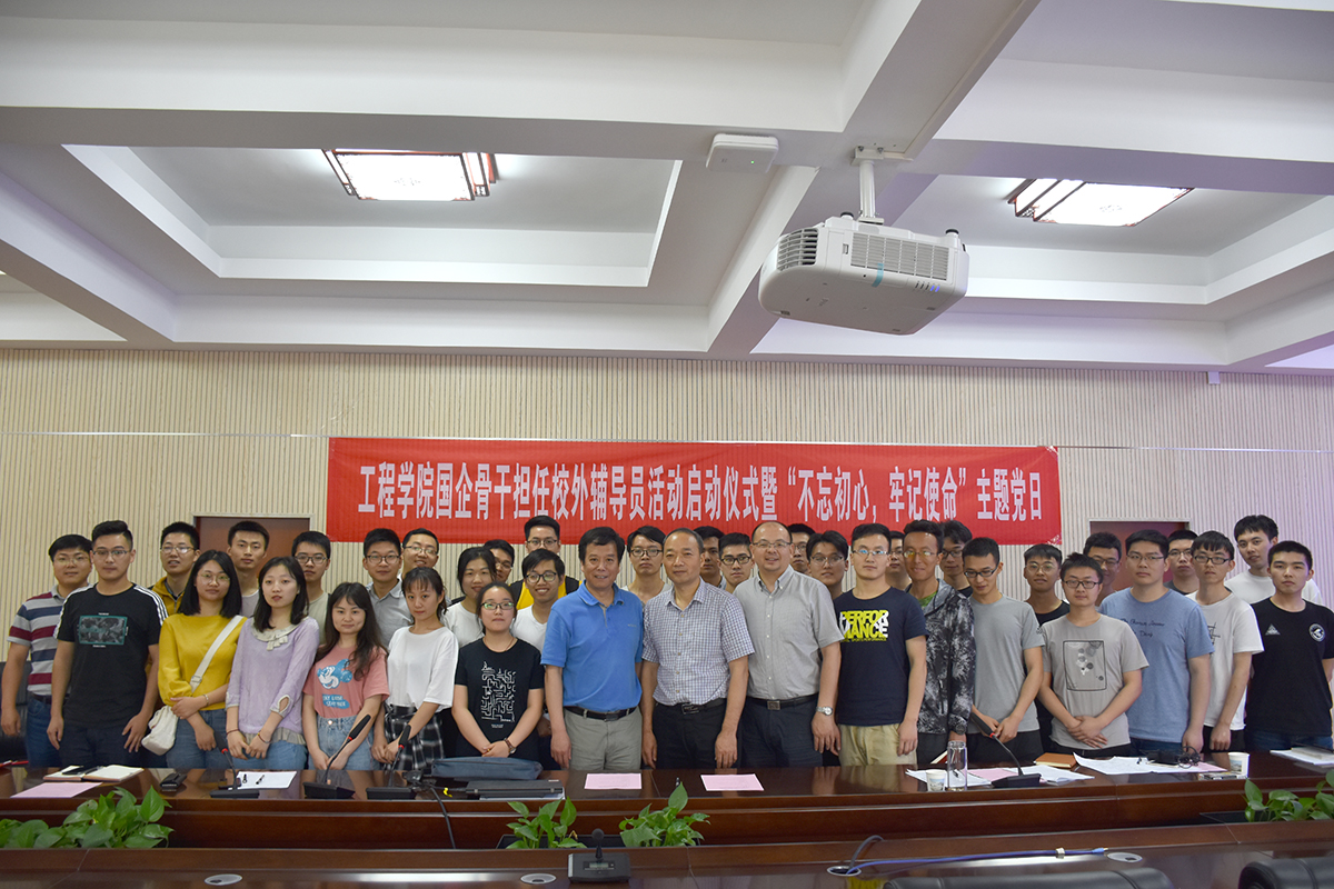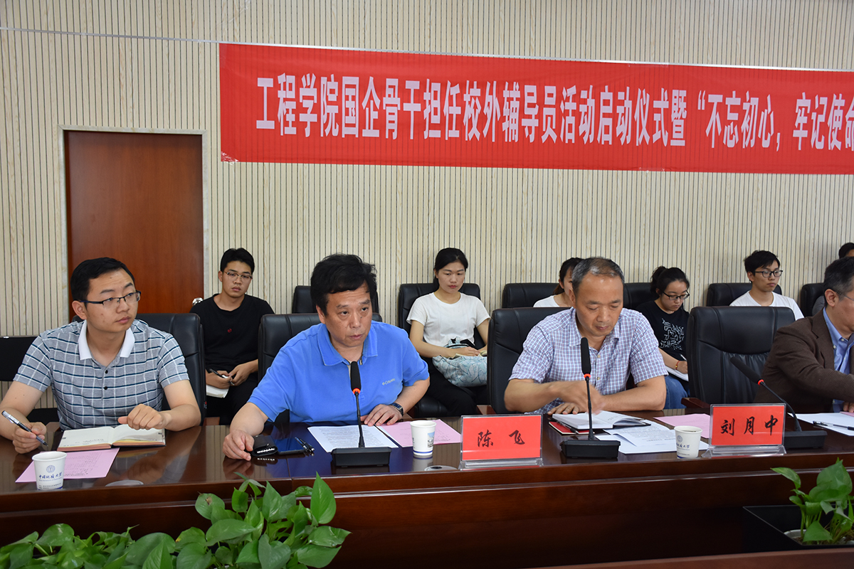 5月20日下午,工程学院国企骨干担任校外辅导员启动仪式暨“不忘初心,牢记使命”我与国企面对面主题党日在工程楼315报告厅成功举行。工程学院校外辅导员、中国黄金集团湖北三鑫金铜股份有限公司提升车间主任、党支部书记刘月中,学校学工处副处长苏洪涛,工程学院党委书记陈飞、副书记江广长、全体辅导员及四个学生党支部共40余人参加活动。