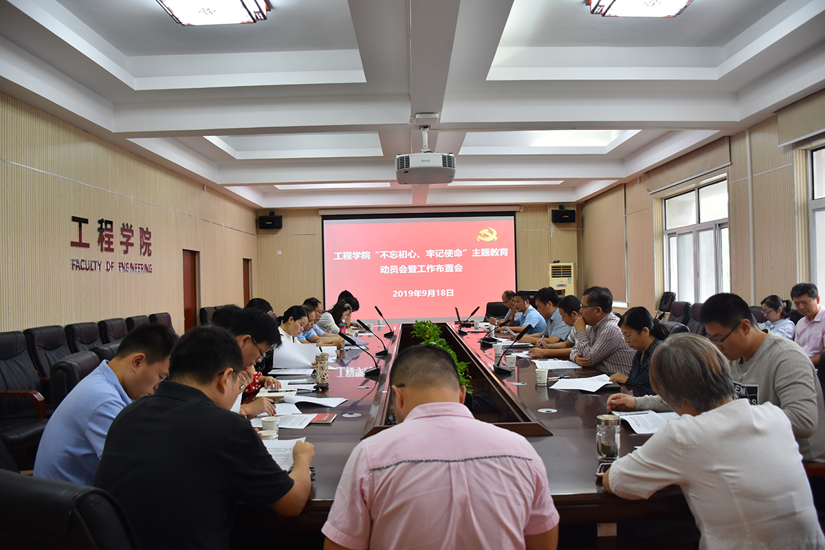 9月18日,工程学院“不忘初心、牢记使命”主题教育动员会暨工作布置会在工程楼315会议室召开。学院党委书记、主题教育领导小组组长陈飞作动员讲话,学校主题教育指导组组长、教务处副处长张建和,学院领导班子成员、党委委员、各系(室、中心)支部书记、主任、学生辅导员、三级单位党员代表参会。