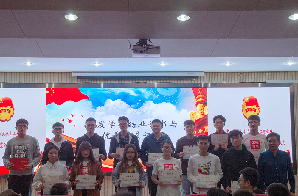 (通讯员:杨晶颖,陈豆,杨昊,孙乐愚)2019年10月25日晚7点,为了引导青年学生进一步坚定跟党走的初心,切实办好团校和加强大学生骨干思想政治培训工作,探索人才培养的“试验区”,开启多元人才培养模式。工程学院在工程楼418举行第一届筑魂班结业仪式暨第二届筑魂班开班仪式。院党委书记陈飞,院党委副书记江广长,校团委副书记谭文伦,院团委副书记文新,马克思主义学院郭关玉,院学工办全体辅导员,院筑魂班班主任王一洋,院第一届筑魂班以及第二届筑魂班全体学员,2019级本科生全体团支书以及2019级研究生全体党支部书记参加了此次会议。
