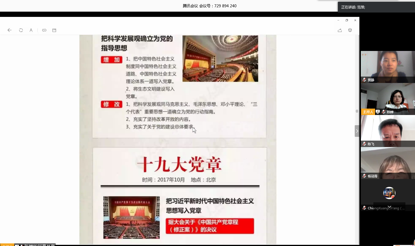 在范萍同志带领下,支部全体党员一起重温入党誓词,并学习了《党章》部分内容。