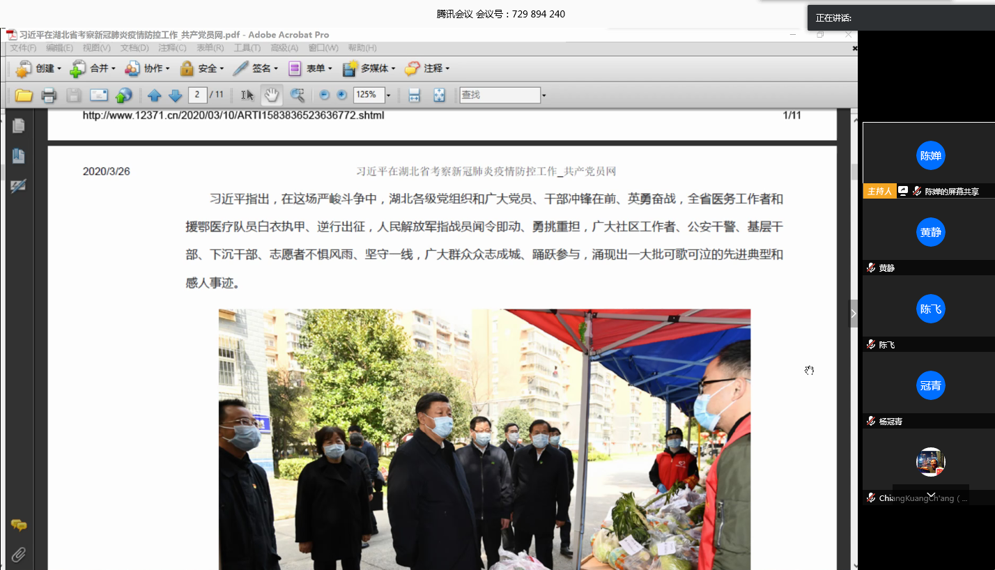 图2 支部党员学习习近平总书记在湖北省考察新冠肺炎疫情防控工作讲话精神
