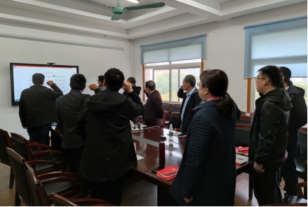 全体与会党员唱国歌、重温入党誓词、学习党章。
