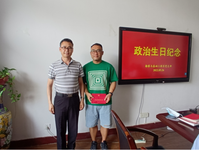 段隆臣同志组织支部老党员为5月份入党的党员老师过政治生日,期望大家注重党性修养,增强党员意识,在习近平新时代中国特色社会主义思想指引下,不忘初心、牢记使命、永远奋斗。随后,蒋国盛同志、蔡记华同志、窦斌同志、郑君同志、吴文兵同志等先后进行了发言,纷纷表示要将“为党育人,为国育才”的宗旨融入到工作全过程,为国家科教事业多做贡献。