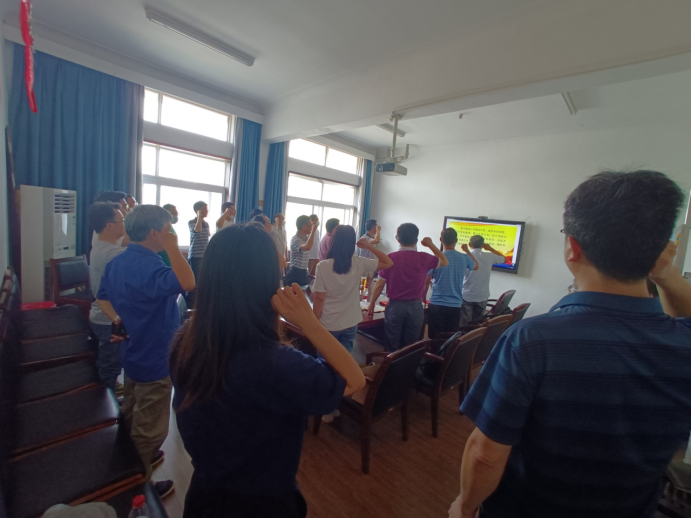 活动开始,参会党员全体起立,齐唱国歌,并由王俊同志领誓,一起重温入党誓词。段隆臣同志领学了《中国共产党章程》第五章“党的基层组织”部分内容。