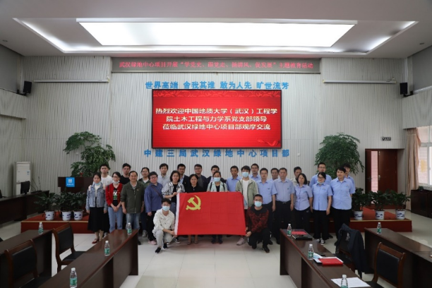 (通讯员 林俊涛)为迎接中国共产党成立100周年,全面落实党中央和学校关于党史学习教育的部署要求,引导全体党员学史明理、学史增信、学史崇德、学史力行,2021年5月20日下午2点,土木工程与力学系党支部联合中建三局武汉绿地中心项目党支部在武汉绿地中心项目一号会议室开展本次党史学习交流活动。参会人员有中国地质大学(武汉)工程学院土木工程与力学系党支部13人以及系学生党员5人,中建三局武汉绿地中心项目党支部12人。