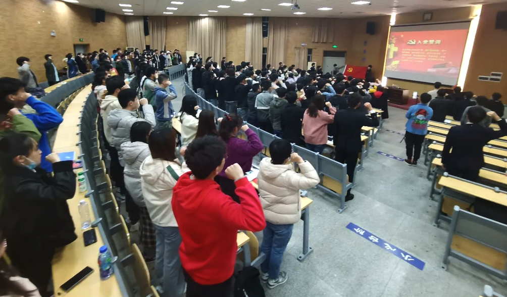 2020年学院共发展预备党员167人,工程学院分党校秘书王焱同志带领同志们进行集体宣誓。